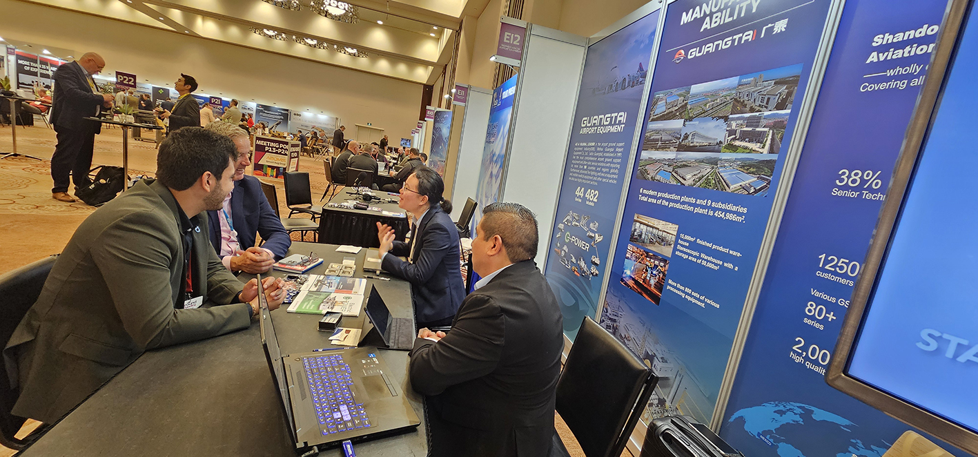 6月25日至27日,威海廣泰應邀參加在加拿大多倫多舉行的第八屆GHI美洲會議,來自世界各地近80家航空公司、地服公司及空港設備制造商參加了本次會議,眾多新老客戶紛紛來到威海廣泰展位進行咨詢與洽談。GHI(ground handling international )創立于1995年,專注服務于空港地面設備行…