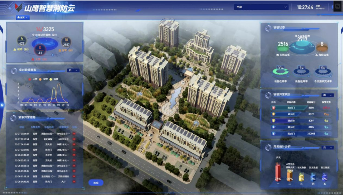 “手機發(fā)來報警,某處有著火點!”智慧消防云平臺中顯示火災現(xiàn)場的視頻畫面,第一時間傳輸?shù)轿飿I(yè)人員的手中,清楚地看到著火點的位置及情況后,物業(yè)人員根據(jù)著火點位置,緊張、有序地通過語音報警系統(tǒng)組織樓層群眾撤離,并第一時間進行火災報警:“您好,火災報警,**市**區(qū)**路**號…