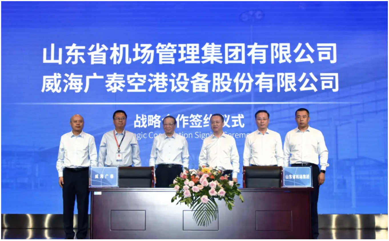 2020年9月28日下午,山東省機(jī)場管理集團(tuán)有限公司(以下簡稱“山東機(jī)場集團(tuán)”)和威海廣泰空港設(shè)備股份有限公司(以下簡稱“威海廣泰”)在威海隆重舉行戰(zhàn)略合作框架協(xié)議簽約儀式,雙方共敘友情,共謀未來發(fā)展,尋求合作共贏新模式。威海廣泰董事長李光太和山東機(jī)場集團(tuán)黨委書記、董…