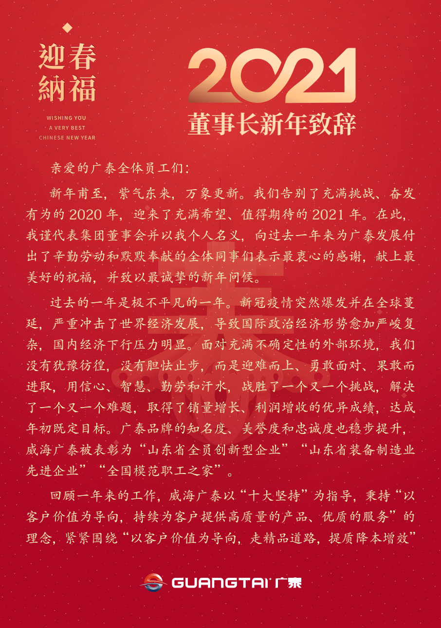 “感動”與“最美”觸動心靈;“目標(biāo)”和“囑托”催人奮進(jìn)?;厥?020,新冠疫情突然爆發(fā)并在全球蔓延,廣泰集團(tuán)科學(xué)防控疫情,嚴(yán)密組織復(fù)工復(fù)產(chǎn),以“十大堅持”為綱,以技術(shù)創(chuàng)新為龍頭,以客戶價值為導(dǎo)向,走精品道路,提質(zhì)降本增效,打造智能化高端保障裝備制造平臺,實現(xiàn)集團(tuán)高質(zhì)…